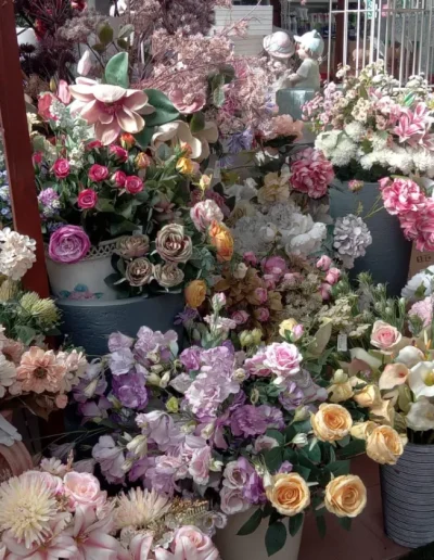 Proponiamo fiori artificiali di alta qualità, perfetti per composizioni permanenti, allestimenti e spazi pubblici o poco illuminati.